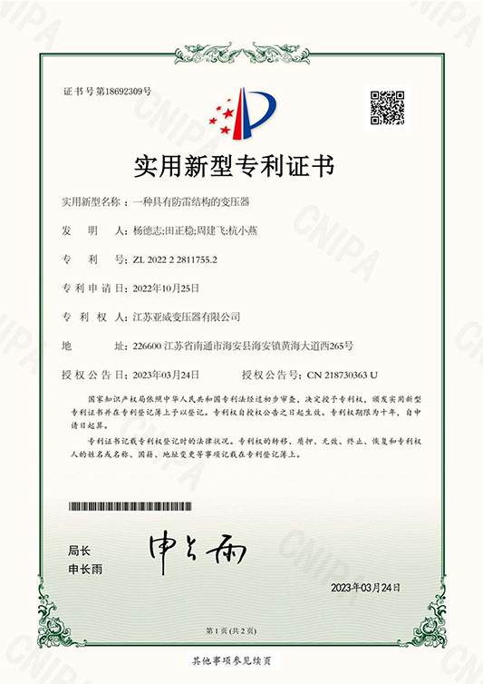 亚威集团创建于1993年,现拥有员工2000多名,其中工程技术人员300多名,公司占地900多亩,公司产品包括500KV、400KV、330KV、220KV以及110KV型超高压变压器、35KV及以下各种干式变压器/油浸式变压器/非晶合金变压器、风光储新能源变压器、预装式变电站;出口系列:单相翻盖美变、三相美变、圆筒变、隔离变、控制变、稳压器等产品;以及各种规格的接地变、消弧线圈、比特币变、预制舱、电抗器、电炉变、整流变、矿用变、船用变等特种变压器。公司产品通过变压器质量监督检验中心、中国电力科学研究院武汉分院以及苏州电器科学研究院的例行、型式、特殊试验。企业先后通过ISO9001、ISO14001、ISO45001、SA8000体系认证,江苏省企业计量合格认证。同时10KV、35KV级配电变压器、箱式变电站,产品销售覆盖如美国、欧洲、加拿大、墨西哥等多个国家及地区。